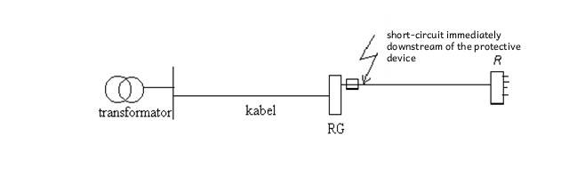 Short-circuit currents are highest at the transformer terminals and decrease with distance along the distribution network. For example, the current at a main distribution board (RG) will be lower than at the transformer, and even lower at a downstream sub-distribution board (R).